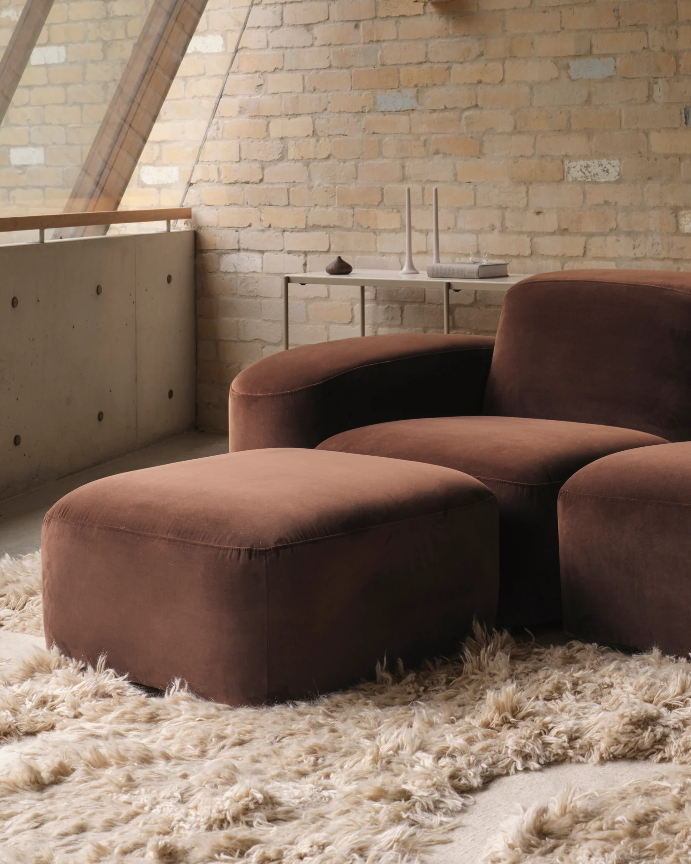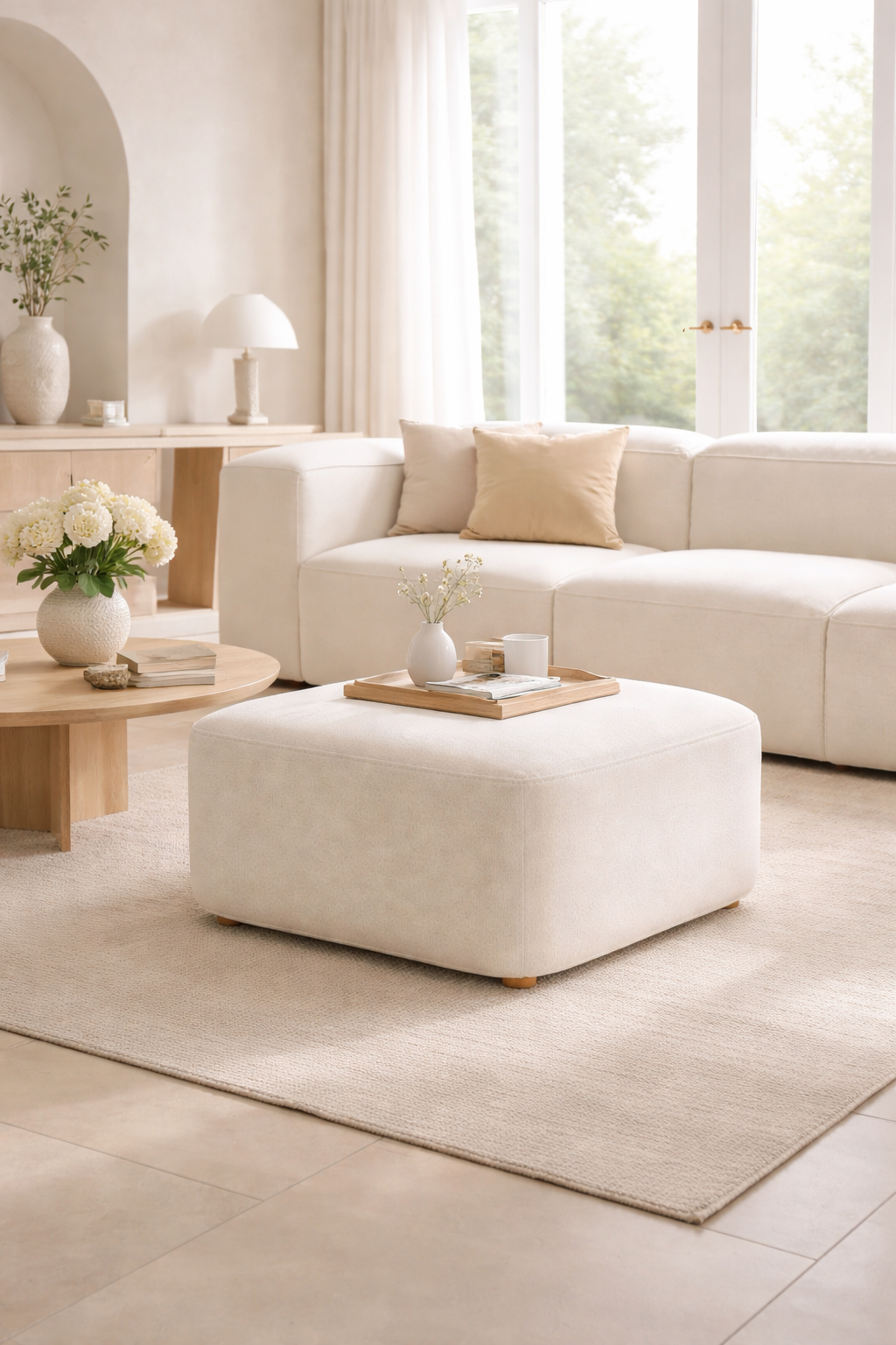 El puff auxiliar Guma retoma las mismas líneas suaves y proporciones generosas del sistema, ofreciendo una pieza versátil que suma confort y funcionalidad al espacio.