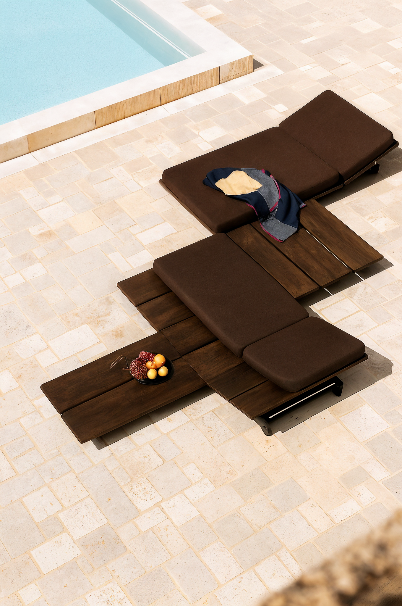 La reposera Vita invita a disfrutar del exterior con libertad y flexibilidad. Su diseño modular permite crear distintas disposiciones según cada momento: desde una tumbona individual hasta una composición continua que se adapta a grupos o espacios amplios. Fabricada en madera y tapizados resistentes al aire libre, combina calidez, confort y versatilidad en una pieza pensada para acompañar el ritmo de la vida al sol.